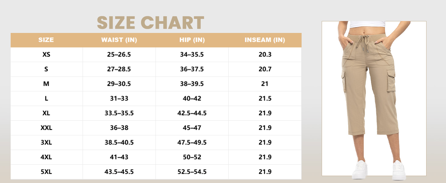 Our Multi-Pocket Capri Pants are designed with multiple pockets placed strategically to securely store your cell phone, wallet, keys, and other items with easy access - no more fumbling or losing items!